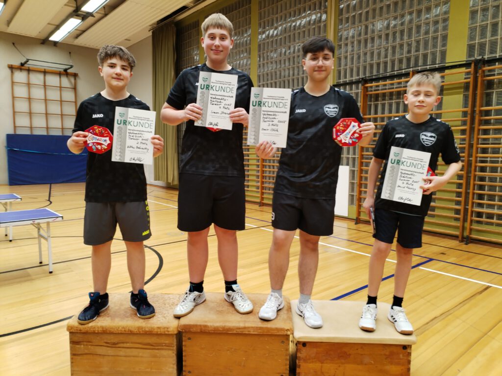 Bild 2: Die Siegerehrung des Midi-Tisch-Turniers (v.l.): Niklas Babinsky, Simon Stroink, Emir Celik, David Kassing