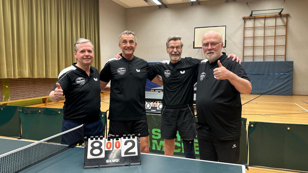 Am 17.04.26 konnte die 4. Rhenania-Mannschaft noch einmal einen wegweisenden Sieg gegen die TTF Falken Krefeld erzielen. Wegweisend deshalb, weil die 4. Mannschaft während der Saison nicht gerade mit Siegen überschüttet wurde, jetzt aber noch einmal gezeigt hat, was in ihr steckt. Dieses Momentum gilt es, mit in die nächste Saison zu nehmen und genau dort weiter zu machen. Der Sieg gegen die TTF Falken fiel mit 8:2 relativ hoch aus. Die Rhenania-Mannschaft bestand in dieser Begegnung aus Manfred Everlien, Jürgen Regert, Jürgen Plehn und Werner Gollnick.