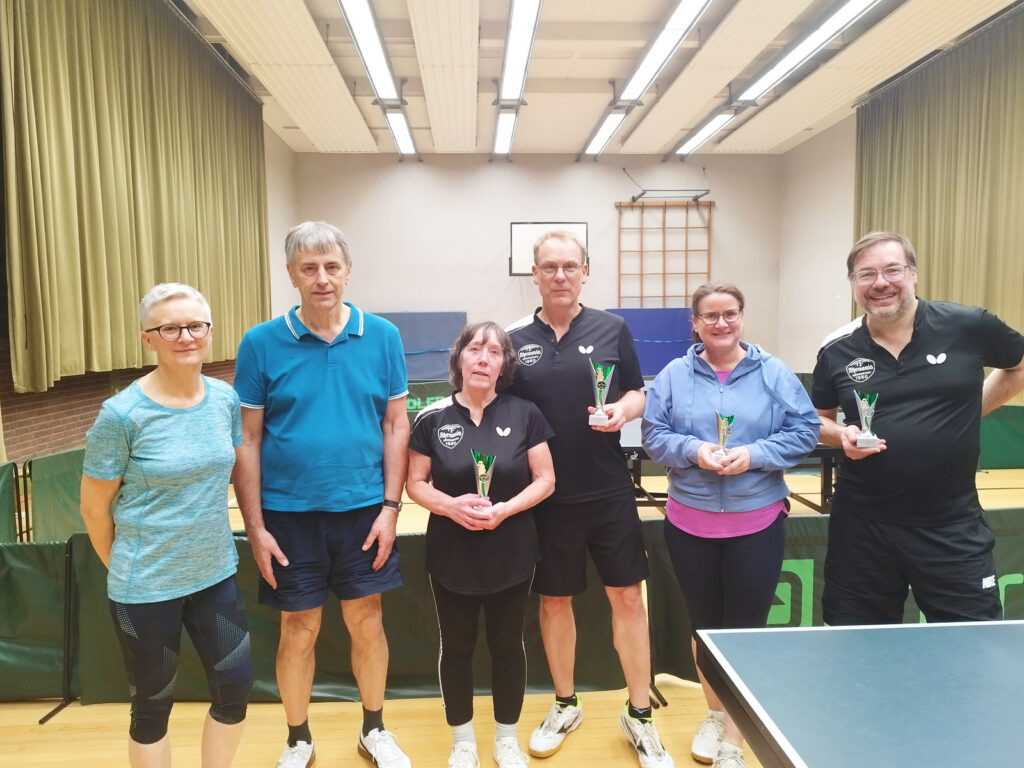 Auf der 75-Jahr-Feier der Tischtennisfreunde Rhenania Königshof wurde mehrmals hervorgehoben, dass in diesem Verein neben dem Wettkampfgedanken auch die Geselligkeit ihren Platz hat. Und das dies gerade einmal 1 Woche nach dem Vereinsjubiläum bestätigt wurde, zeigt den Charakter dieses Vereins, der allen Worten auch Taten folgen lässt, denn unter der Leitung von Mario von der Lippe wurden am 31.10.2025 die Vereinsmeisterschaften im Mixed-Doppel durchgeführt. Diese Wettkampfform findet man nicht sehr häufig in anderen Vereinen. Bei Rhenania wurde diese Wettkampfform bereits im 3. Folgejahr durchgeführt und das bei weiter steigender Beliebtheit, auch weil sie besonders dazu geeignet ist, den geselligen Charakter auf breiter Basis zu unterstreichen. Für ein reichhaltiges Buffet sorgten der Verein, aber auch die Teilnehmer selber. Neben spannenden Begegnungen brachte der Abend jede Menge Spaß und tolle Gespräche. Es war ein insgesamt gelungener Abend, den man definitiv im Jahr 2026 wiederholen möchte.